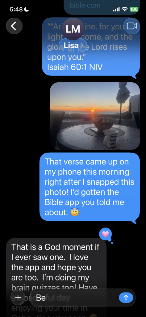 One morning, right as I was viewing the gorgeous sunrise, my phone dinged and up popped the morning verse: